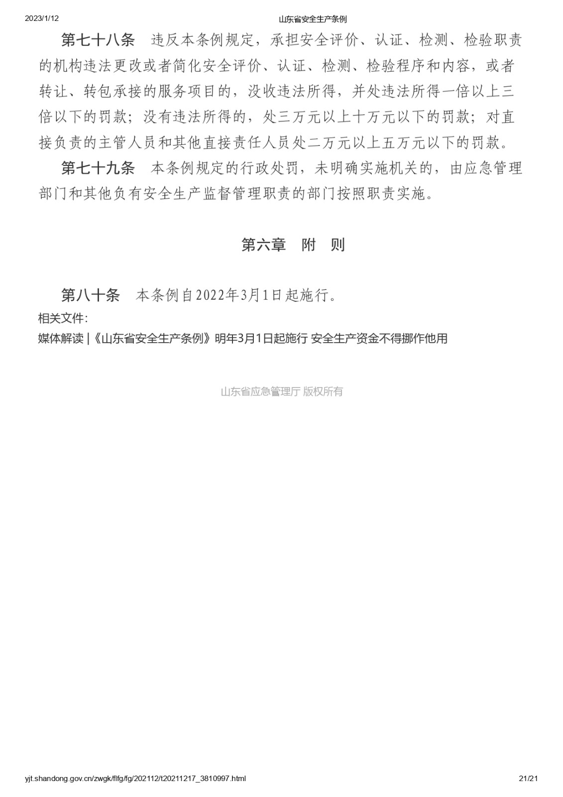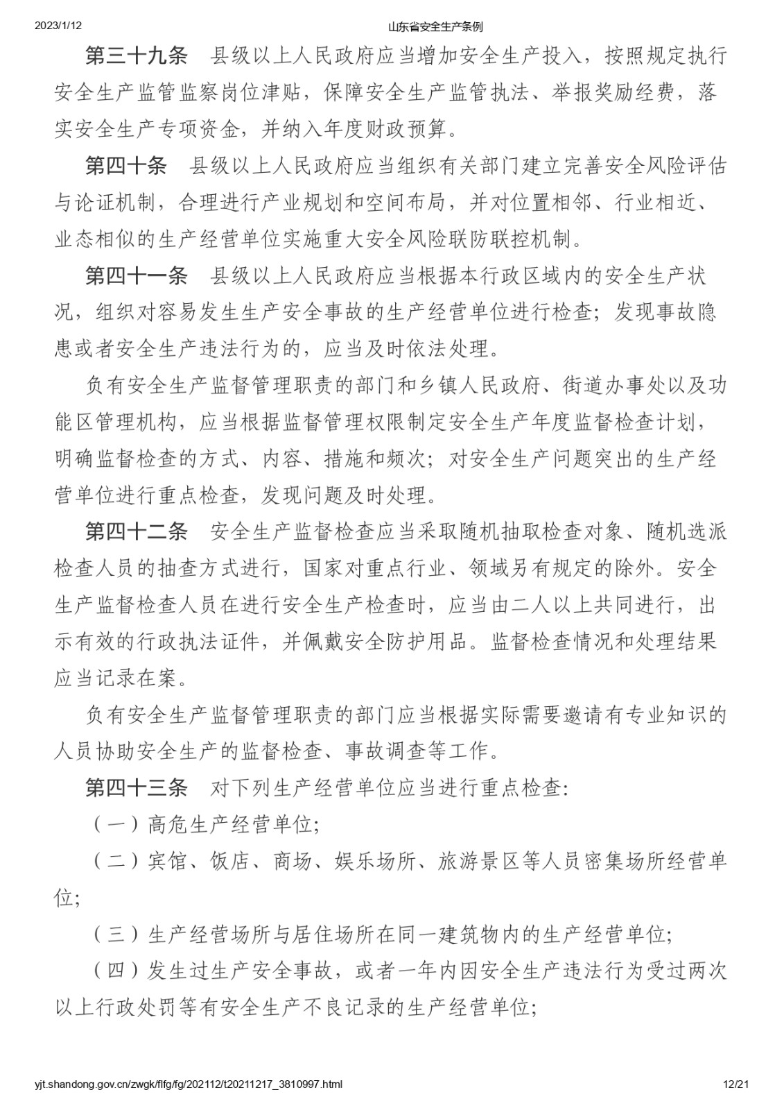 山東省安全生產(chǎn)條例 |