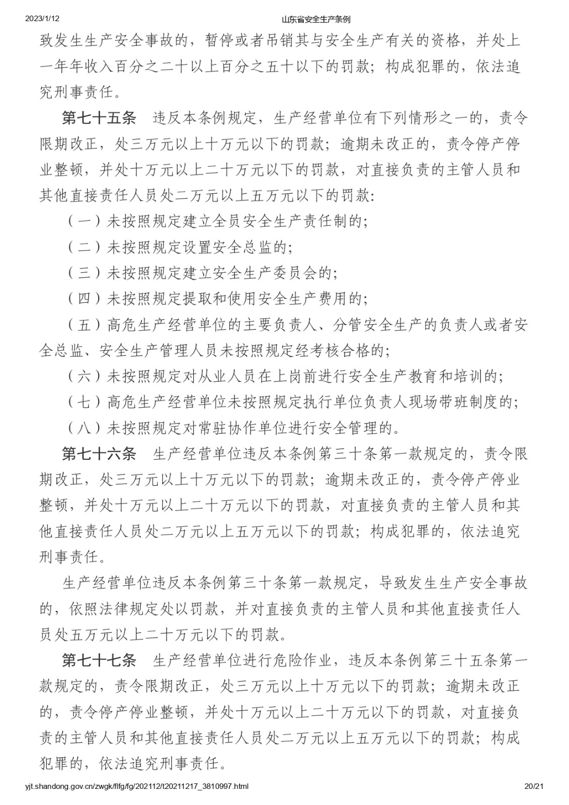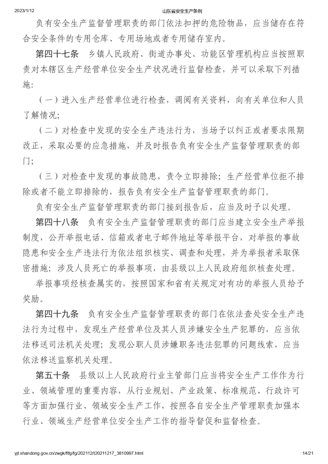 山東省安全生產(chǎn)條例